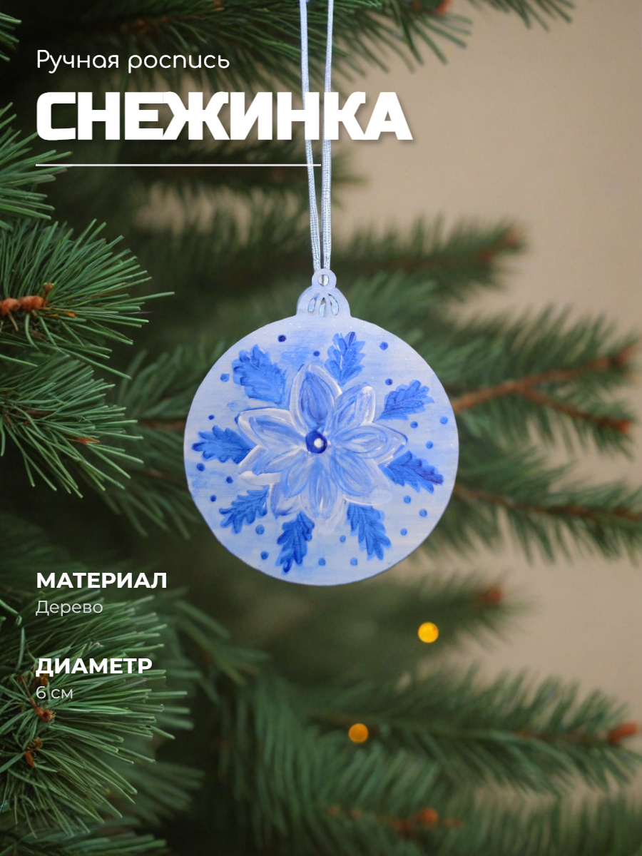 Елочная игрушка Снежинка Ручная роспись