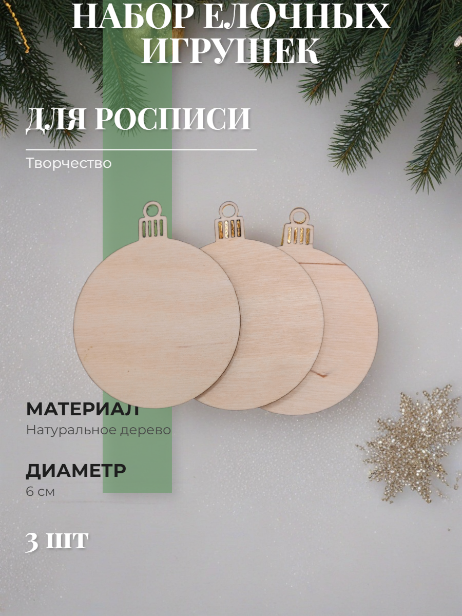 Набор елочных игрушек для росписи 3 шт